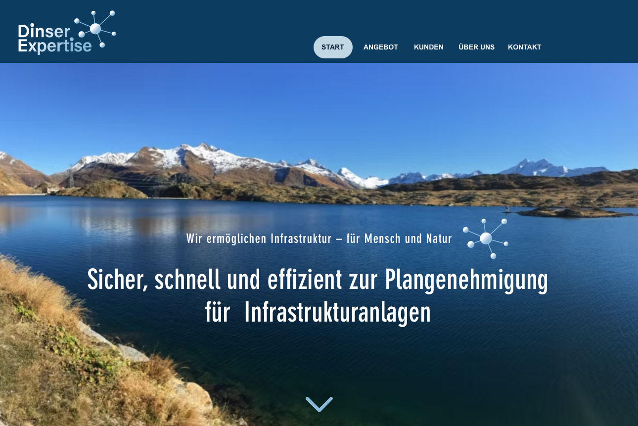 Dinser Expertise bietet effiziente Standortprüfungen und -Empfehlungen für Infrastrukturprojekte. Wunsch des Kunden: eine neue, moderne Webseite. Dies benötigte vorab auch ein neues Brand Design und Logo.
