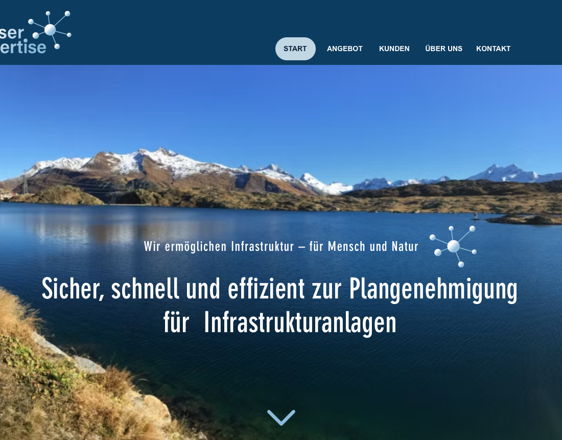 Dinser Expertise bietet effiziente Standortprüfungen und -Empfehlungen für Infrastrukturprojekte. Wunsch des Kunden: eine neue, moderne Webseite. Dies benötigte vorab auch ein neues Brand Design und Logo.