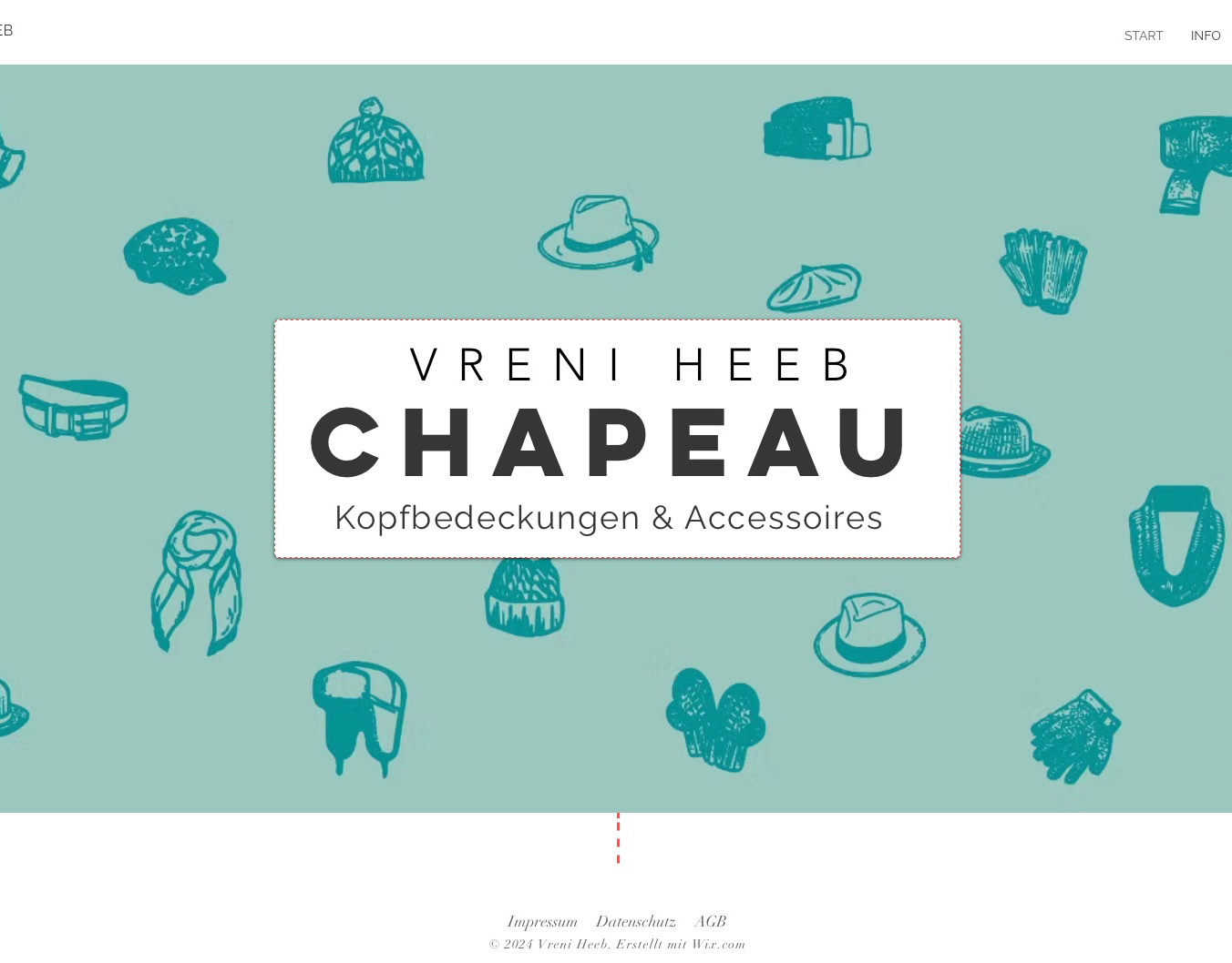 Einfache Webseite für ein Geschäft spezialisiert auf Kopfbedeckungen und Accessoires sowie ein Schaufenster Hinterglas-Plakat.